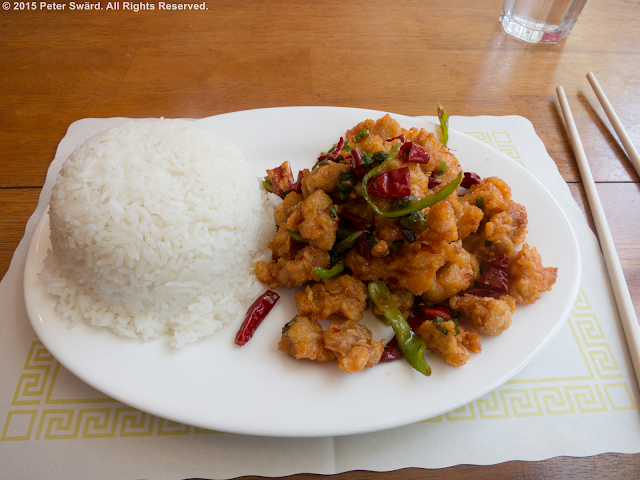 This is the Cheng-Du Spicy Chicken ($7.75) lunch special with white rice. Crispy tender chicken with some heat included. A generous portion and the chicken was juicy and tender and crisp.